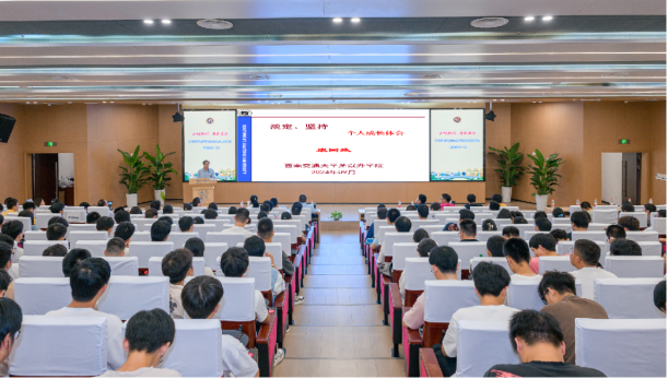 新生开学第一课”。康国政院长以“淡定、坚持”为主题,贴心为同学们准备了开学第一课并倾囊相授,他深刻地解析了自己在本硕博求学阶段和工作阶段的个人成长历程,让同学们感知到优秀榜样的力量,生动形象地阐述了人类知识由全科学习到已知专业学习再到未知领域的学习,最终突破知识边界的前沿领先学习。他强调机会是属于有准备的人,并鼓励同学们树立批判性思维,做好准备,珍惜现在,着眼未来,潜心学习,培养自身独立学习研究能力和交流合作能力。康国政院长的讲座为同学们做好生涯规划创造了新天地,指明了方向。