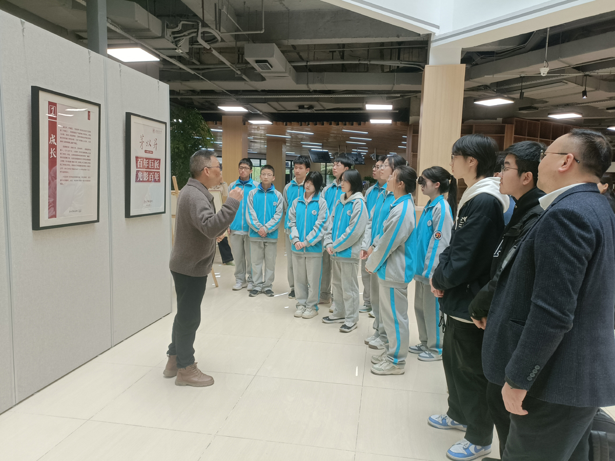 随后,师生移步茅以升图书馆。茅以升图书馆的资深讲解员杨永琪老师,将茅以升励志、爱国的一生为大家进行了全面而详细的讲解。茅以升留学时期的笔记、钱塘江大桥建设图纸影印件、修复大桥时使用的工具模型……一件件展品串联起科学家的成长轨迹和报国之路。大家在展区前久久驻足,对茅以升精神有了更加深刻的认识。