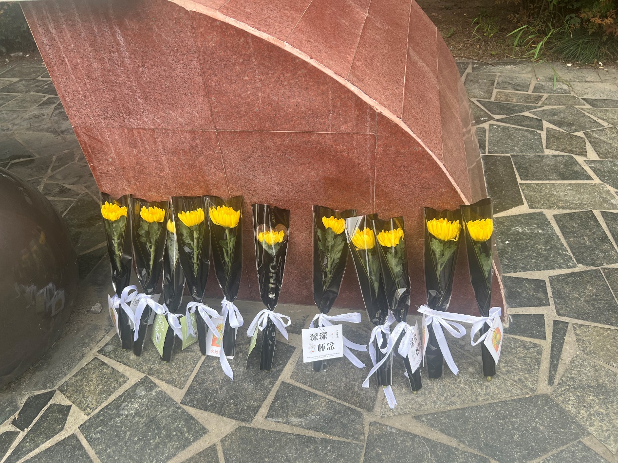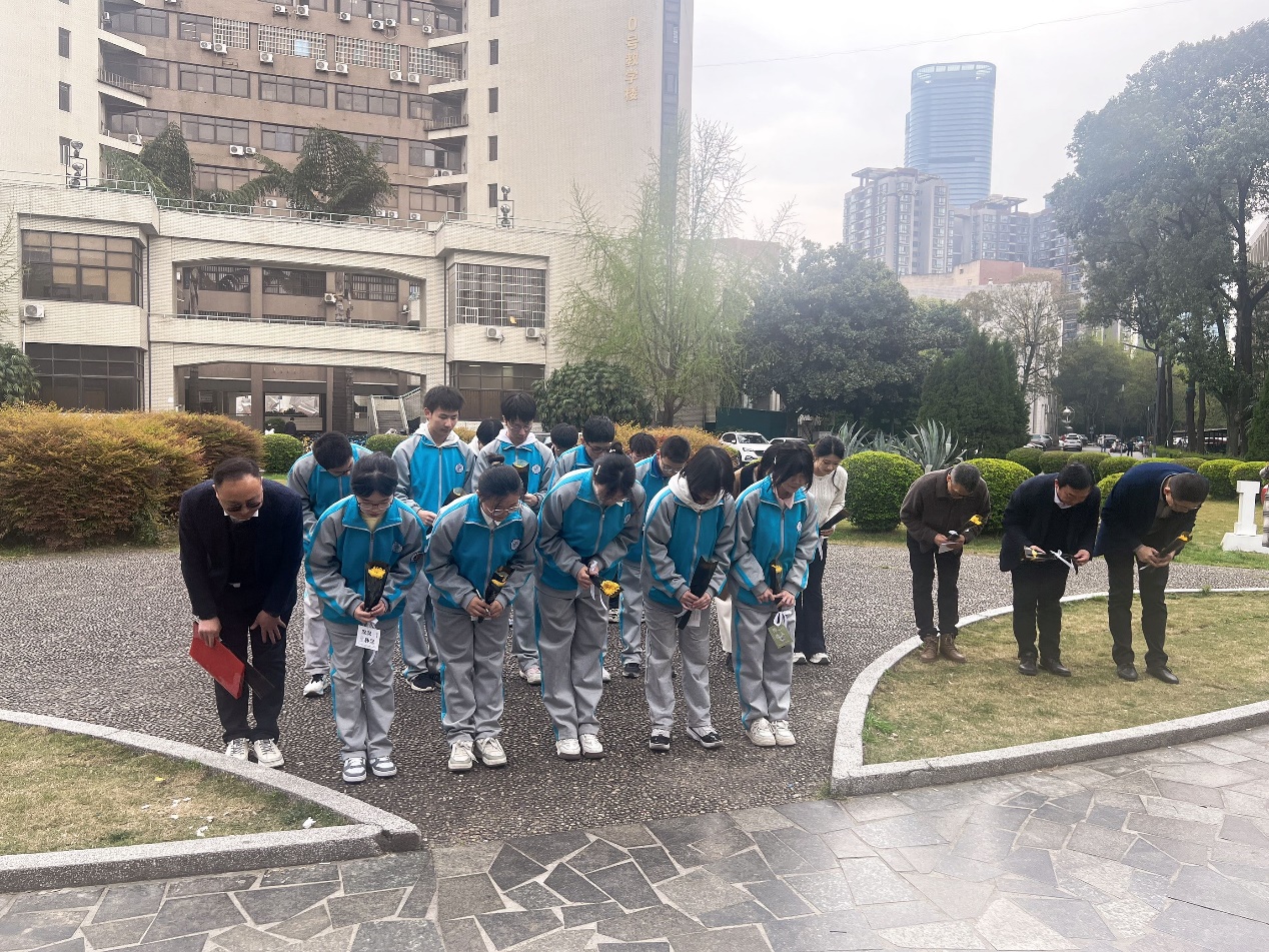 家国又清明,鲜花寄哀思。全体师生在方寸留言卡上书写下对茅老的深情寄语和厚重的感悟,列队缓步上前,将饱含敬意的小黄菊轻放于雕像基座,深深鞠上一躬,默默缅怀茅老。墨香与花香交织,娟秀的笔迹与伟人的雕像辉映,共同完成一场跨越百年的青春应答。