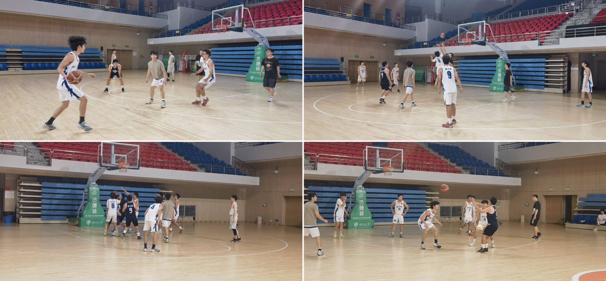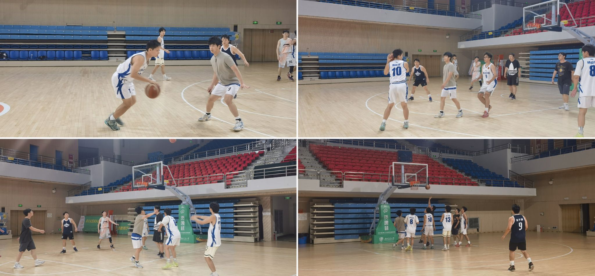 与此同时,篮球场上演了一场精彩纷呈的蓝白对决,由非毕业班同学组成的白队对阵毕业班同学组成的蓝队。比赛伊始,双方迅速投入高强度对抗。灵活的运球、精准的传球、犀利的突破、果断的投篮、超高的命中率,每一轮攻防都扣人心弦,点燃了大家的热情,掌声与助威声此起彼伏。比分从始至终一直胶着上升,最终由毕业生组成的蓝队以100:99力克非毕业生同学的白队,1分险胜,为现场观众奉献了一场力量与技巧完美融合的视觉盛宴。