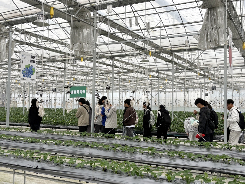 随后,同学们实地探访了工厂内的核心设施——“超高层垂直立体无人植物工厂移动式智慧植物工厂,并重点参观了西南地区规模最大的规模化立体栽培草莓智慧工厂。