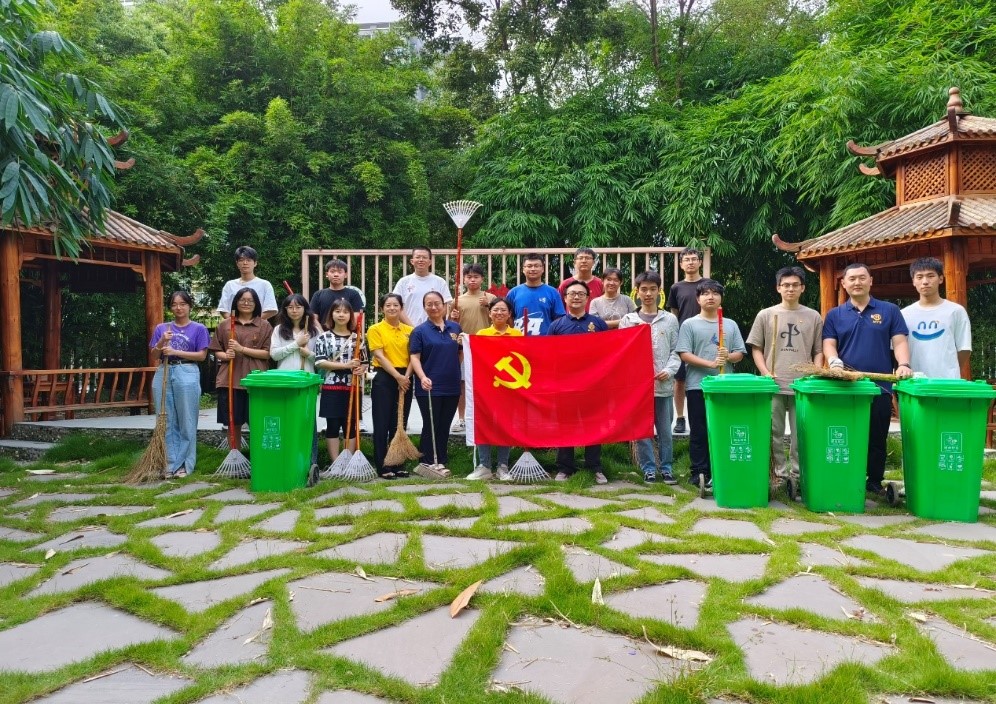 一个暑假的风吹雨打,筑梦园内竹林落叶层层堆积,还有个别不讲公德的人随意丢弃的各种垃圾。每位党员同志都热情高涨、干劲十足,不怕累、不怕脏、不怕蚊虫叮咬,耙草、扫地、清运,工具不够用手捧、右手累了换左手,天气炎热汗流浃背,没有一位党员同志停下休息,没有一位党员叫苦叫累,只为了能将筑梦园尽量打扫干净,为同学们提供一个干净舒适的学习、休憩的环境。